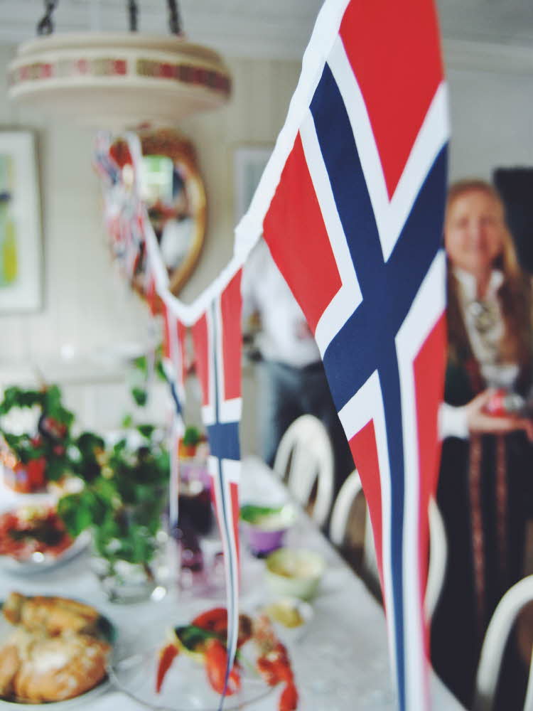 Den norska flaggan ska självklart stå på bordet. När det gäller 17 maj och flagga är det alltid mycket är mer som gäller. Pynta bordet med norska flaggor. Och om du inte tycker att det räcker så hittar du recept på desserter i flaggans färger här.