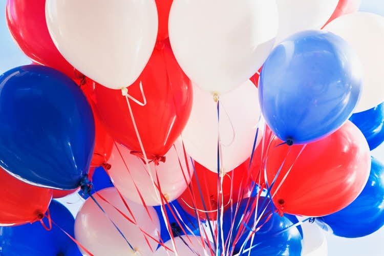 Har du inga flaggor kan du satsa på ballonger eller vimplar i rött, vitt och blått. Dessa finns det inga regler för, så de kan hänga kvar hela kvällen.