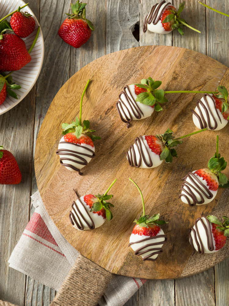 Servera chokladdoppade jordgubbar. Den här varianten kan serveras separat eller som komplement till en annan dessert. Om du bland annat väljer att servera jordgubbarna till mäktiga chokladbrownies rekommenderar vi att du doppar dem i vit choklad.