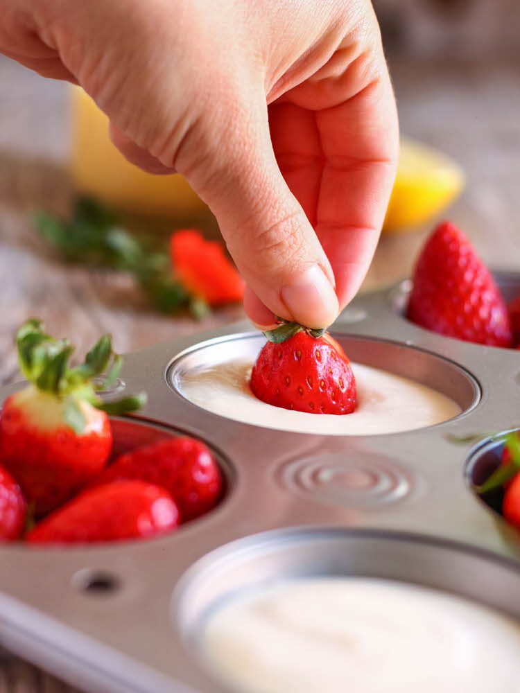 - Doppa jordgubbarna i chokladen och lägg dem åt sidan på ett fat med bakplåtspapper.