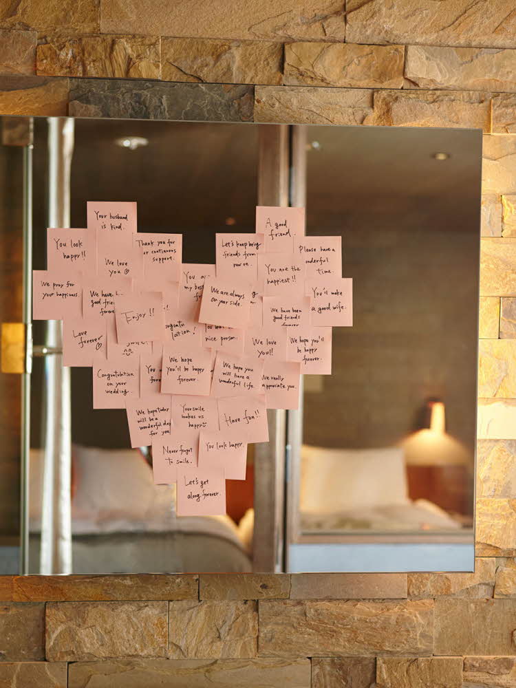 Lapparna kan fästas i en hjärtform på spegeln i badrummet så att det är det första hen ser när hen vaknar. Lapparna kan även fästas på valfri plats i hemmet. Vissa kan till exempel fästas på mycket synliga ställen som kylskåp, speglar och väggar.