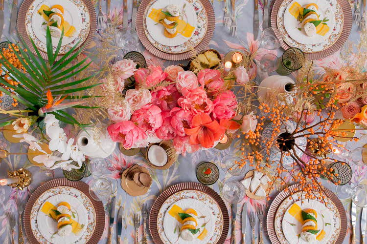 Den traditionella bordsdekorationen består av vit duk och enkla, rena färger. Vad sägs om att göra tvärtom?