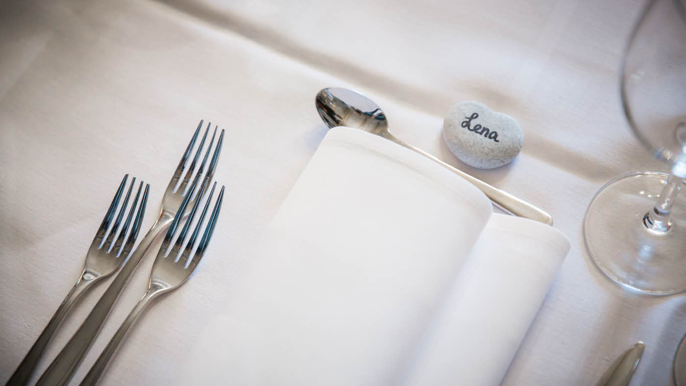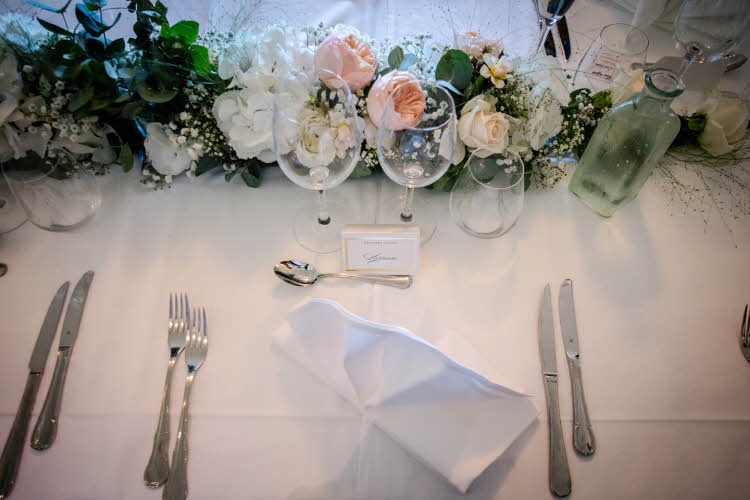 – Och är menyn en trerättersmeny behöver du inte duka med tallrik. Många väljer därför att använda en dukningstallrik. Det är också vanligt att lägga till en liten tallrik med en smörkniv till varje, om bröd hör till måltiden, förklarar bröllopsarrangören.