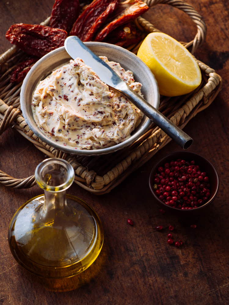 Vispat smör kan smaksättas med vad du vill. Ersätt till exempel tomat med vitlök, örter, oliver eller paprika.