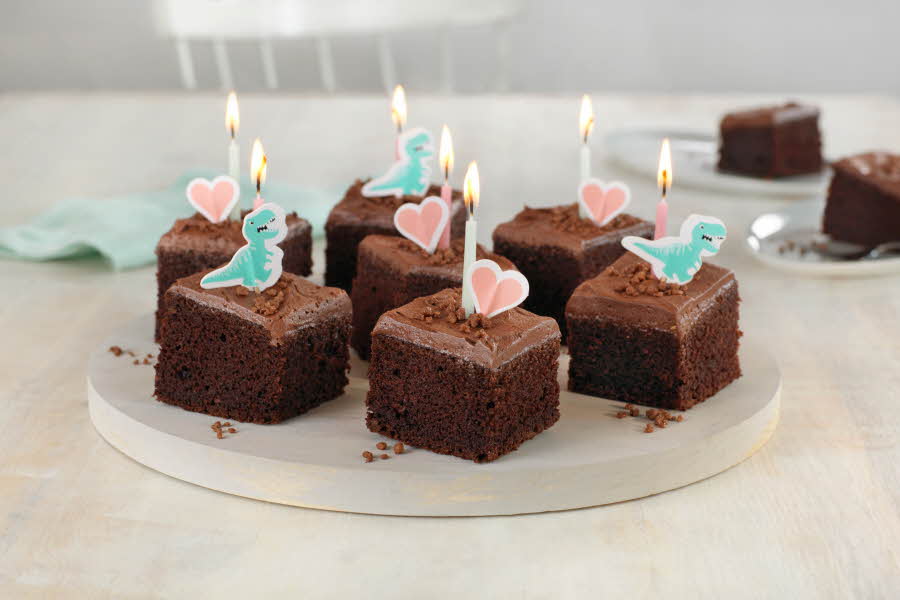 Chokladkaka är sällan fel att servera på barnkalas – och gör du lite extra av pyntet kan samma recept bli till flera kakor. Vi visar hur du gör.