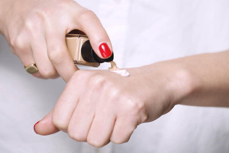 Blanda några droppar strobecreme – en kräm med ljusreflekterande effekt – in i din foundation för extra lyster. Applicera gärna blandningen med en beautyblender som du trycker lätt mot huden.
