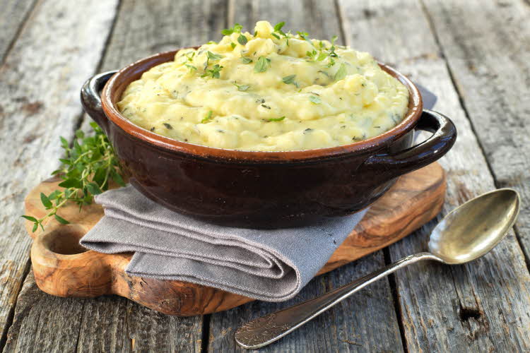 - Blanda i hackad timjan och smaka av med salt och peppar. Justera konsistensen med lite mer mjölk om du tycker att moset är för tjockt.