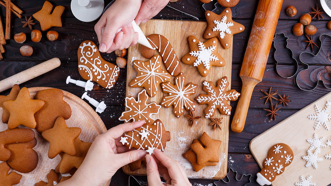 Baka pepparkakor. Pepparkakorna kan både ätas och användas som julpynt. Om du gör ett hål överst i figuren innan du gräddar dem kan du hänga upp dem i ett sidenband eller en fin tråd. Antingen i julgranen eller som en läcker fönsterdekoration.