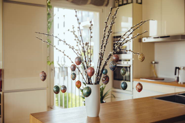 Det finns många enkla sätt att skapa en härlig påskkänsla. Vi visar hur du dekorerar med stearinljus, påskägg och vide.