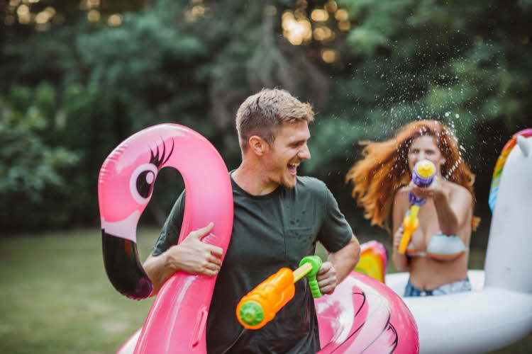Trädgården kan fyllas med strandstolar och uppblåsbara badleksaker. Låt gästerna välja mat från menyer med bilder på maträtterna. Med andra ord: Här kan inget gå fel.