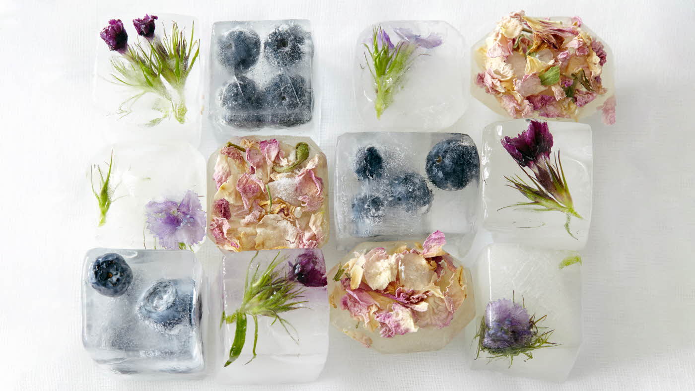 Dekorativa isbitar gör också susen. Du kan göra isbitar av fruktjuice, eller lägga frukt, bär eller grönsaker i iskubsformarna. Allt du behöver är extra stora iskubsformar, det du vill lägga i dem, vatten och en frys. Och vips – extra kallt och extra snyggt!