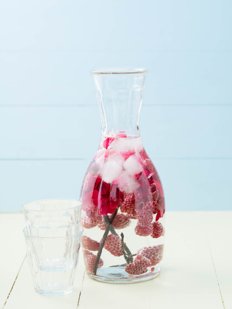 Se till att gästerna får i sig tillräckligt med vätska med en dryckesstation: Fyll stora karaffer eller krukor med kran med det du ska servera och garnera med mynta, lime, granatäpple, frusna bär eller ätbara blommor.