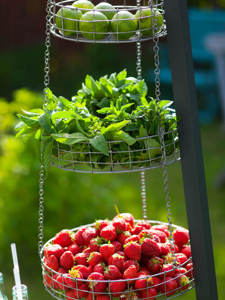 Ska du ordna sommarfesten i trädgården kan dina trädgårdsredskap utgöra dekorationen. Ta fram den gamla skottkärran, fyll den med is och servera dryckerna i den. Har du en stege av trä kan du ställa upp den mot väggen och dekorera stegen med ljusslingor, eller använda den att ställa fram glas på. En gammal balja kan bli dekorativ om du fyller den med vatten, blommor och värmeljus som flyter på ytan. Och om du har några gamla mjölkhinkar kan du ställa ut dem och fylla dem med blommor – det skapar verkligen lantlig stämning.