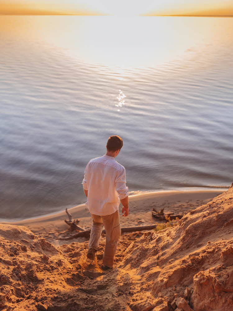 – Med en vit linneskjorta och linneshorts utöver badbyxorna kan du bygga flera olika outfits med få plagg. Använd linneskjortan till linneshortsen den ena dagen och till badbyxorna en annan.