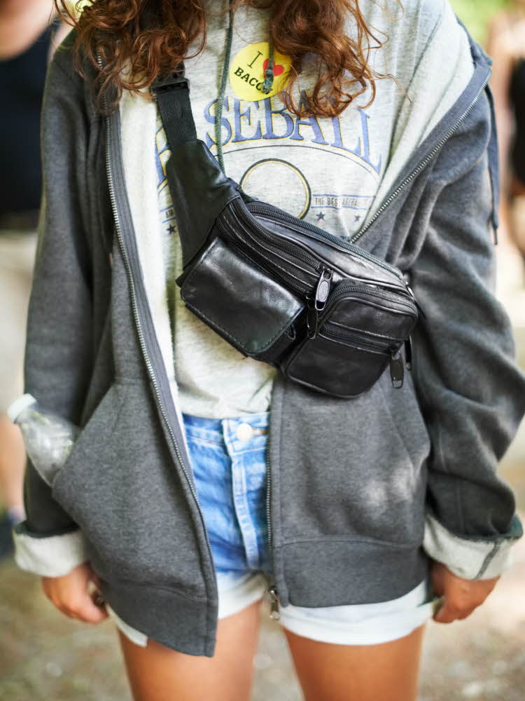 Midjeväska är det mest praktiska du kan ha dina saker i när du är på festival. Då har du hela tiden armarna fria att dansa, digga, äta och dricka – och du behöver inte irritera dig över att väskan eller toteväskan glider ner från axeln när du trängs bland de andra framför scenen. Den är dessutom tillräckligt liten för att du alltid ska ha dina saker nära till hands och därmed inte riskerar att behöva leta frenetiskt efter bankkortet när du ska betala för din pizzabit.
