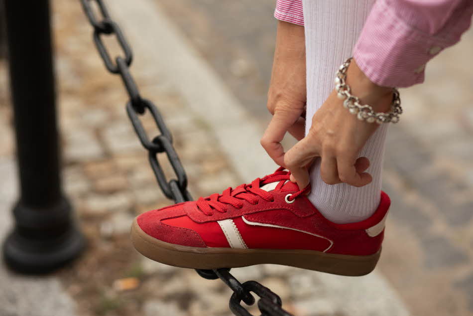 Extra trendigt är det med ett par platta Mary Jane-skor som kännetecknas av att de har en rem över foten, antingen en enkel platt variant eller en med lite chunky sula. Eller så kan du satsa på ett par ballerinaskor i trendfärgen rött, tipsar stylisten.