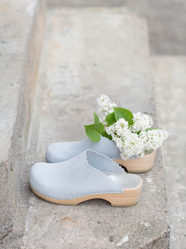 – De kommer i olika lädernyanser, allt från bruna toner till svart och vitt, och det ska vara träsula, gärna med lite höjd. De är perfekta att styla till boho-stilens klänningar och kjolar, säger Cecilie.